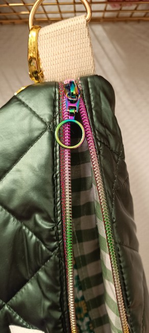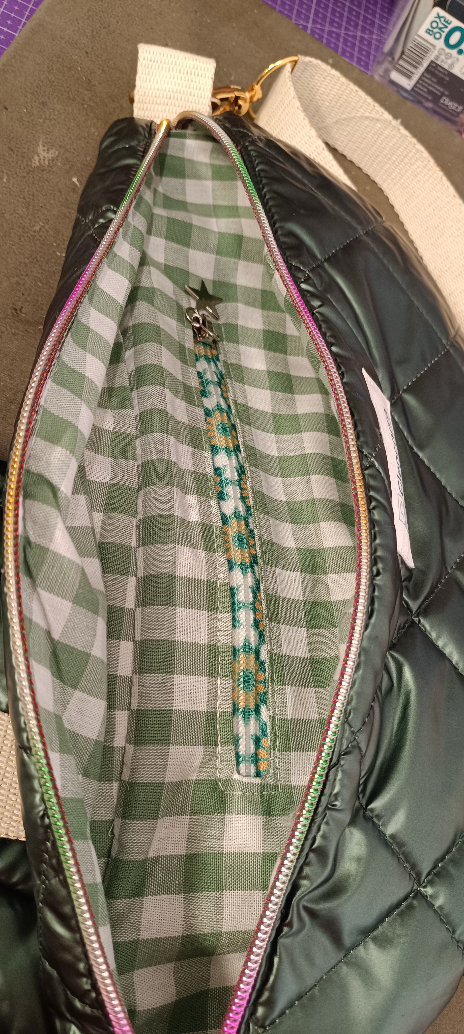 2 Bananes uniques taille L réalisées dans des manches de blouson upcyclées.